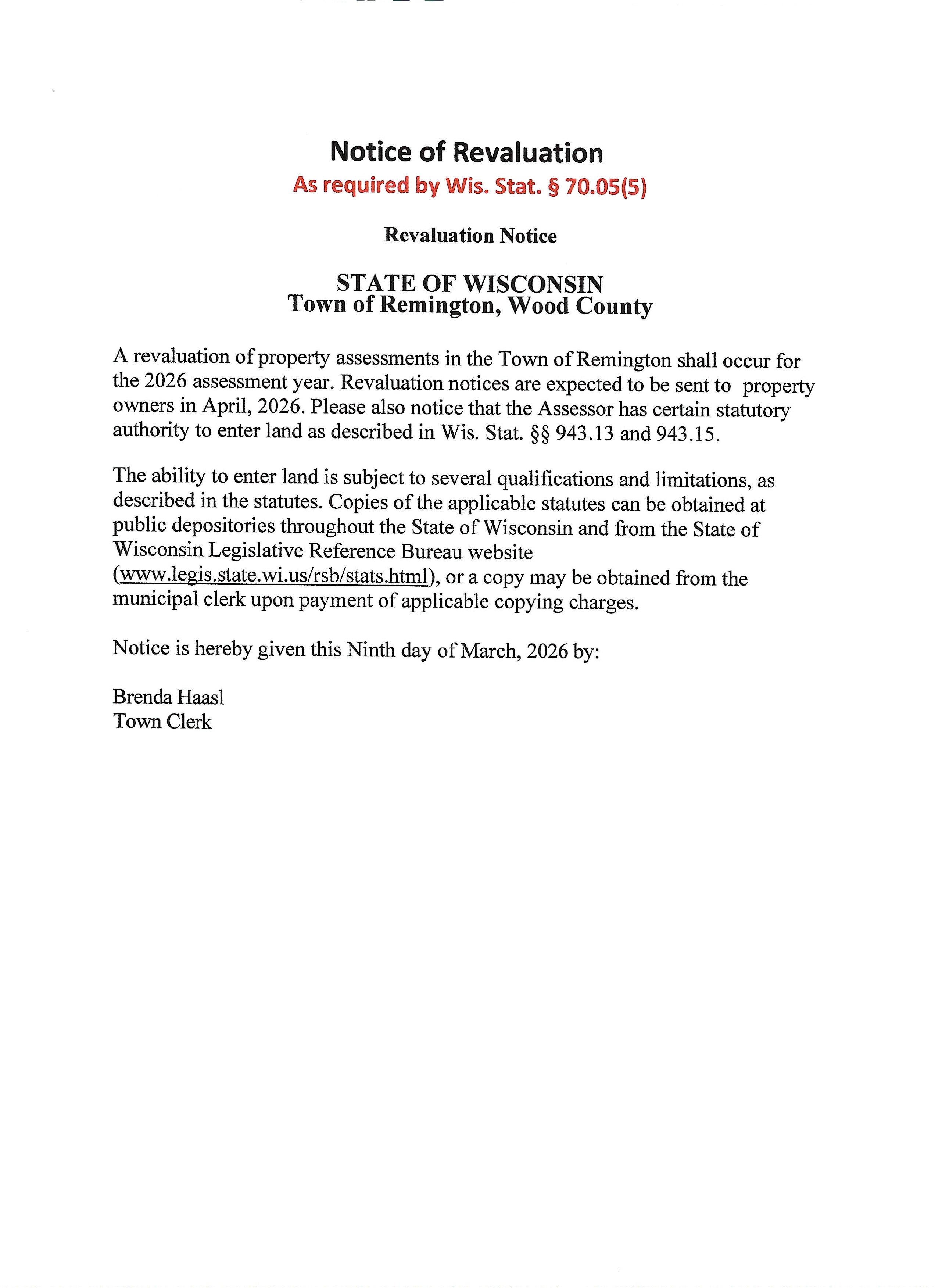 2026 Property Revaluation Notice